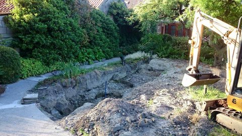 eerst uitgegraven, daarna vakkundig vijverfolie geplaatst